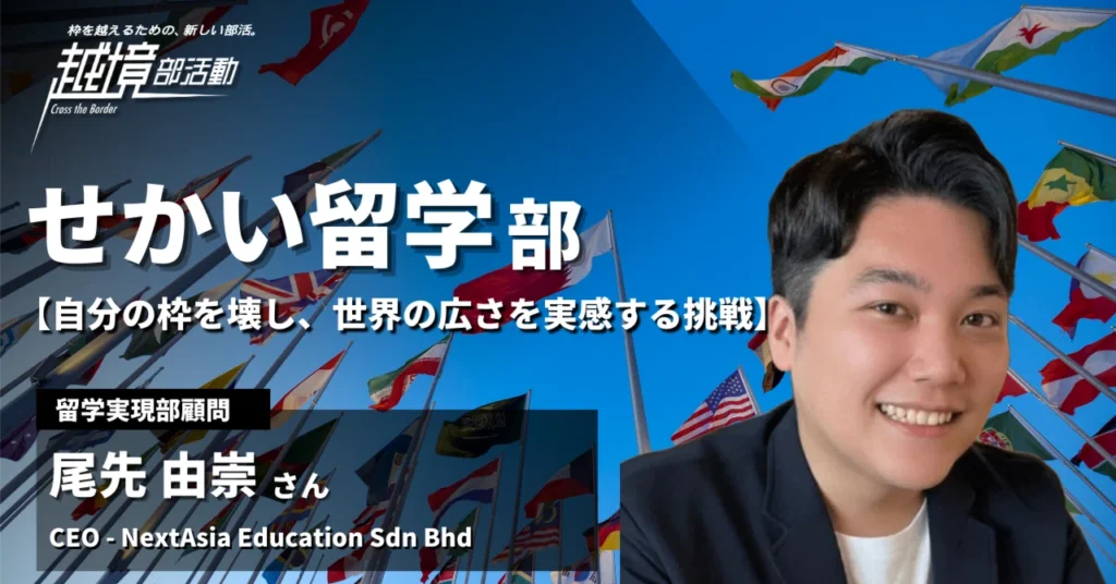 NextAsia Education代表の尾先由崇が、越境部活動第3期において、「せかい留学部」の顧問として参画し、約3か月間にわたりプログラムの設計および運営を担当しました。